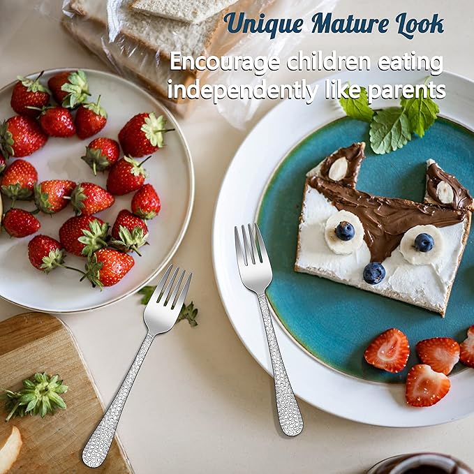 HaWare stainless steel toddler forks are crafted from premium, food-safe stainless steel that’s non-toxic, odor-free, and perfectly sized for little hands. They’re sturdy yet comfortable, polished for a smooth finish that resists fingerprints, and built to last through endless snacks, meals, and dishwasher cycles.