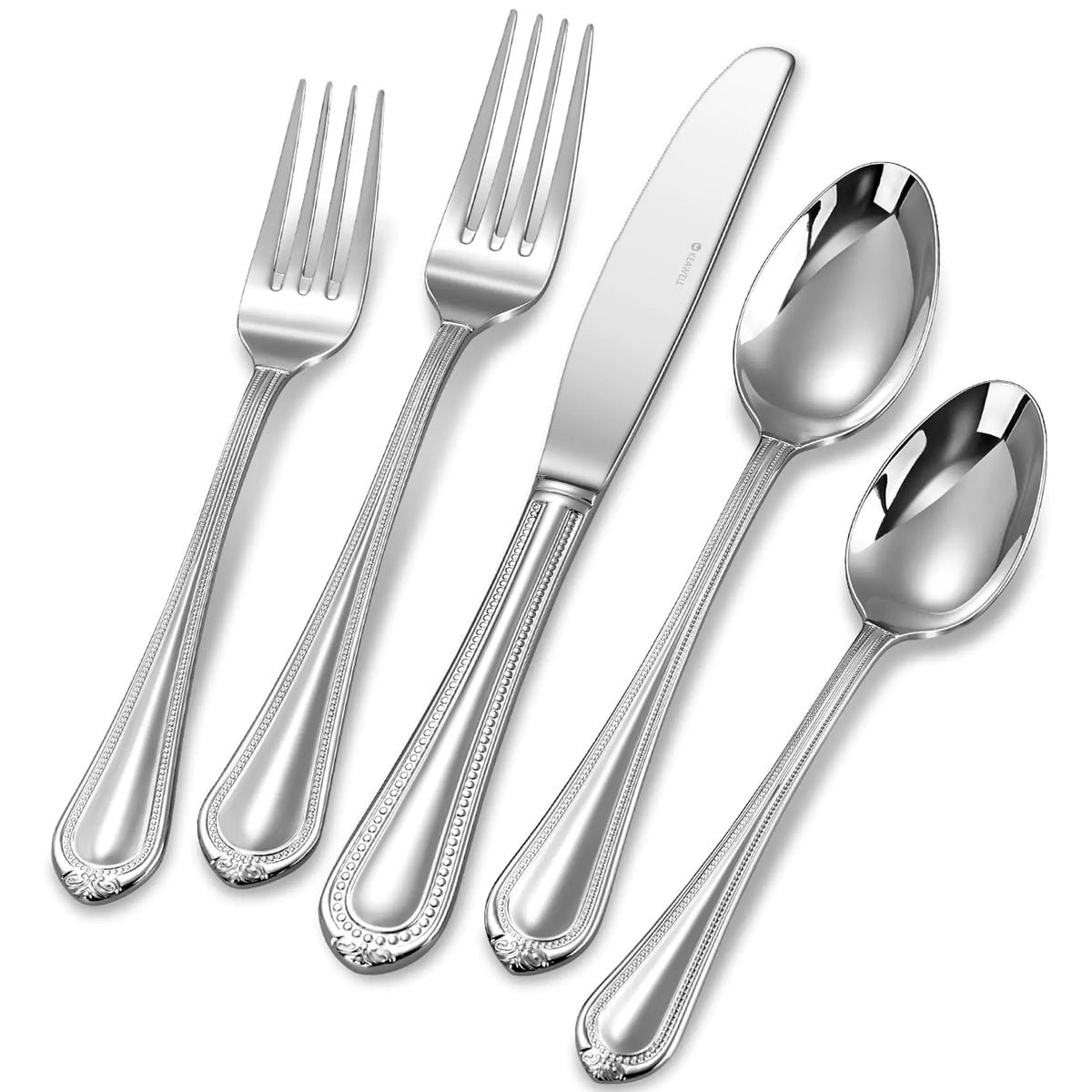 Featuring a classic beaded edge and a brilliant mirror-polished finish, this flatware set complements any décor—from formal dining to casual everyday meals.