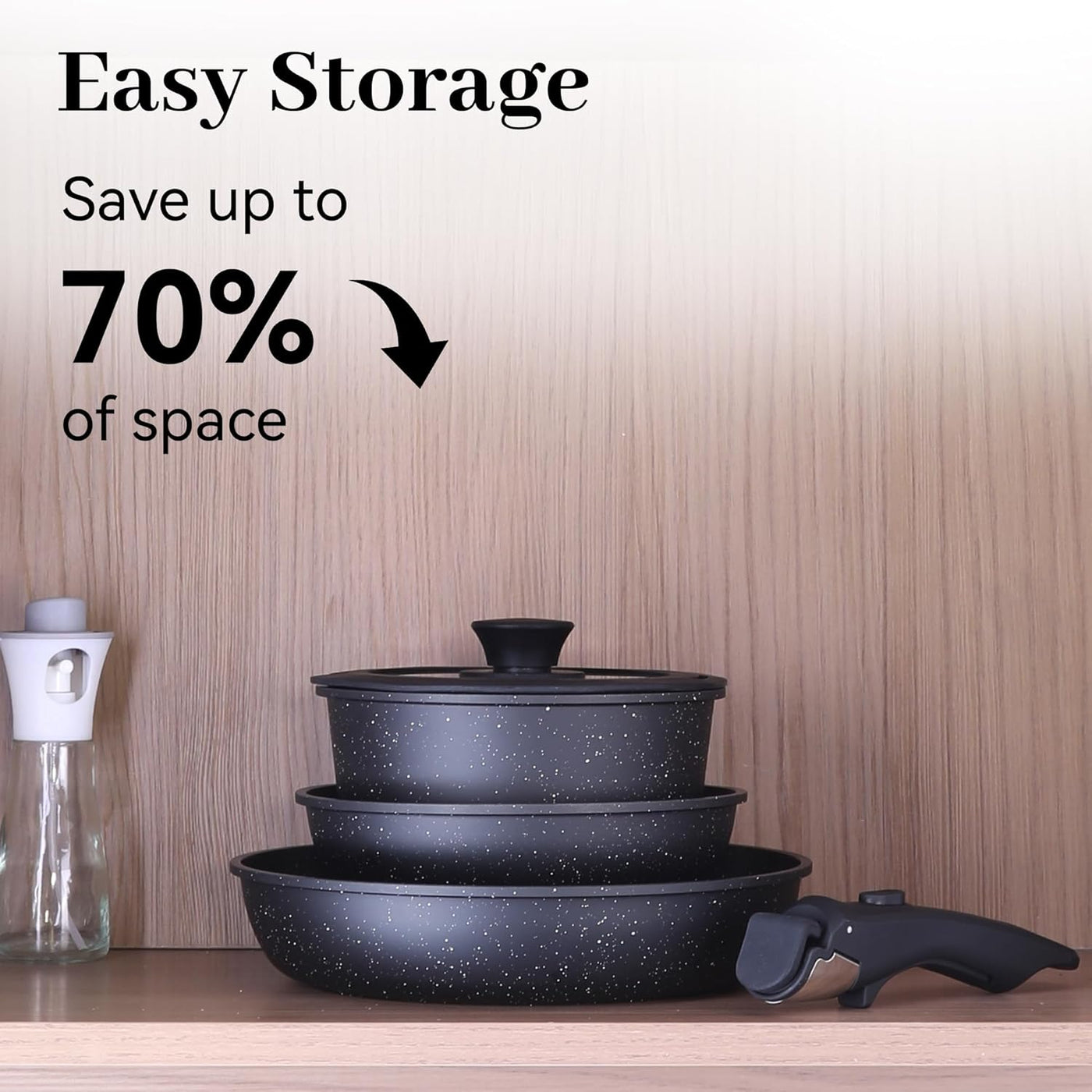 Stackable design and removable handles allow you to optimize 75% of cabinet space, perfect for small kitchens, RVs, or anyone tired of cluttered counters.