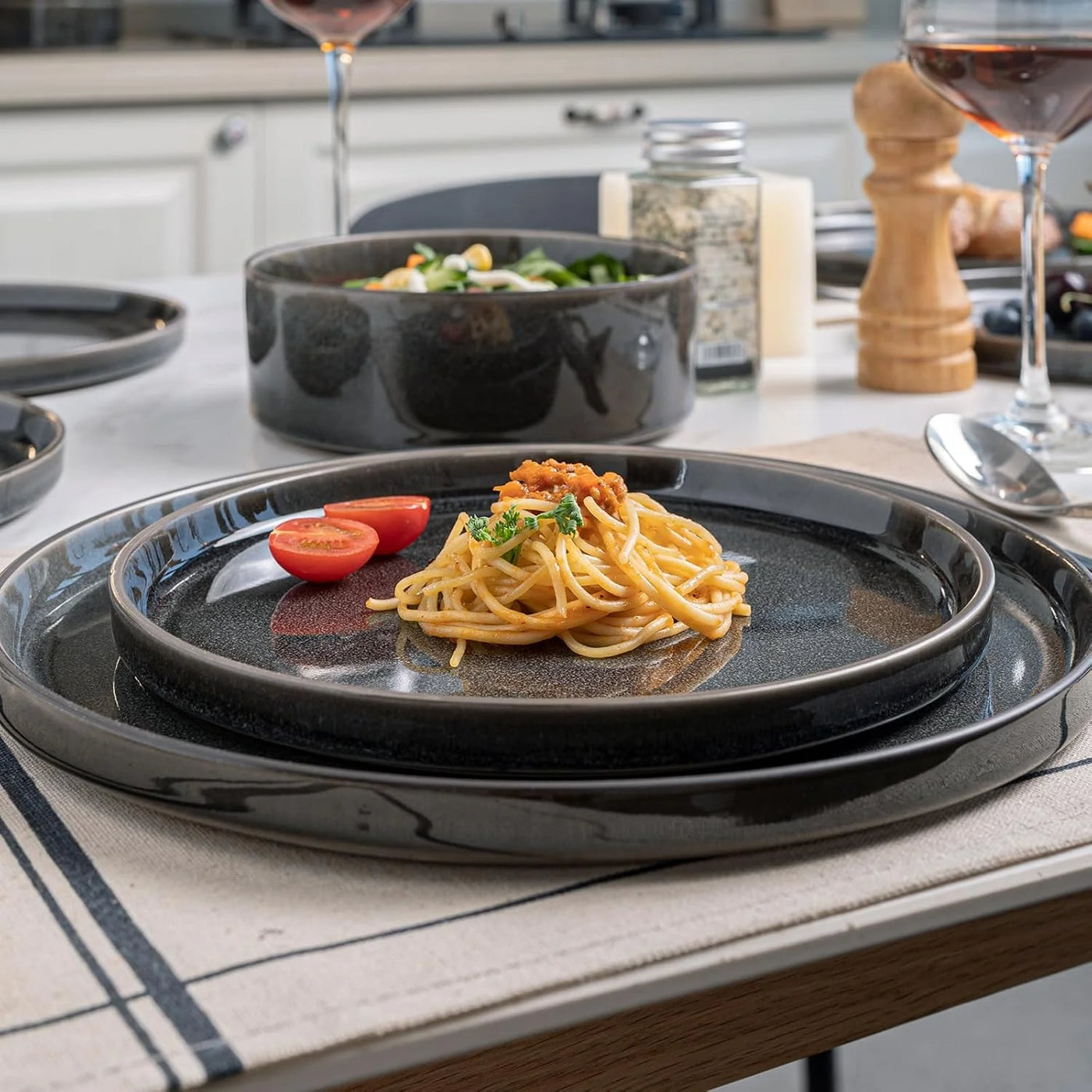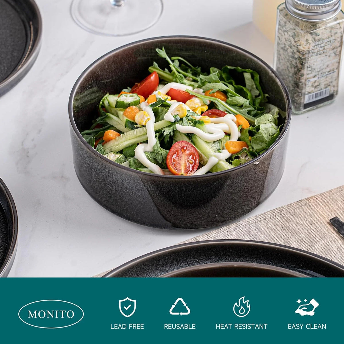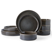 MONITO 12-Piece Ceramic Dining Set - Microwave & Dishwasher Safe, Black