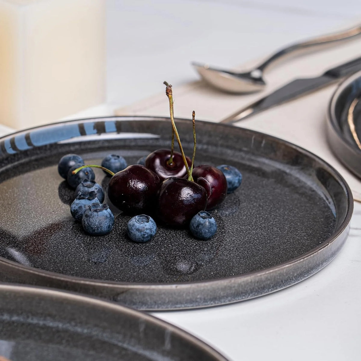 MONITO 12-Piece Ceramic Dining Set - Microwave & Dishwasher Safe, Black - Galactic black