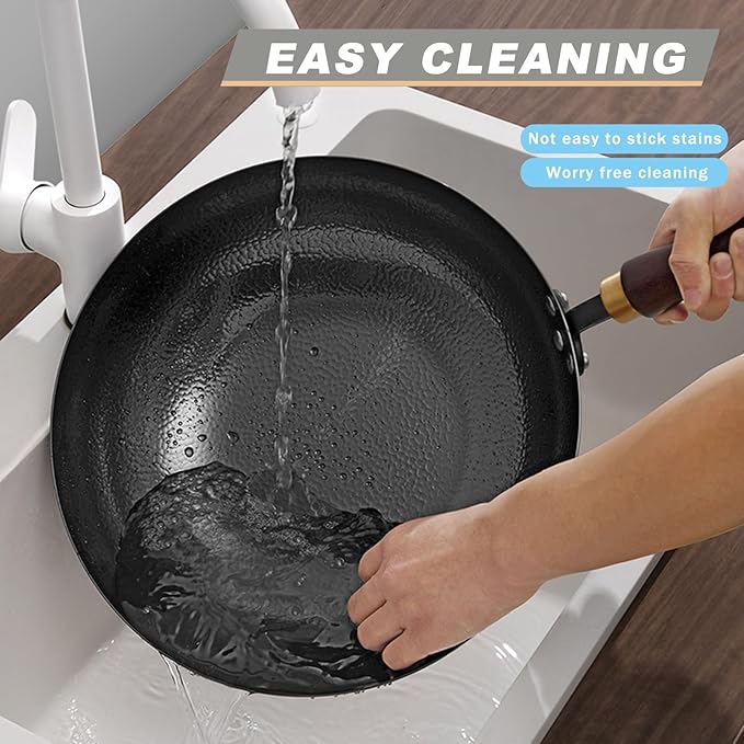 This wok is forged from authentic carbon steel, the gold standard for traditional woks. Once pre-seasoned, it builds up a natural nonstick surface — no chemicals, no nonsense. Thanks to the nitriding process, it’s tougher, more rust-resistant, and built to last for years of sizzling stir-fries.
