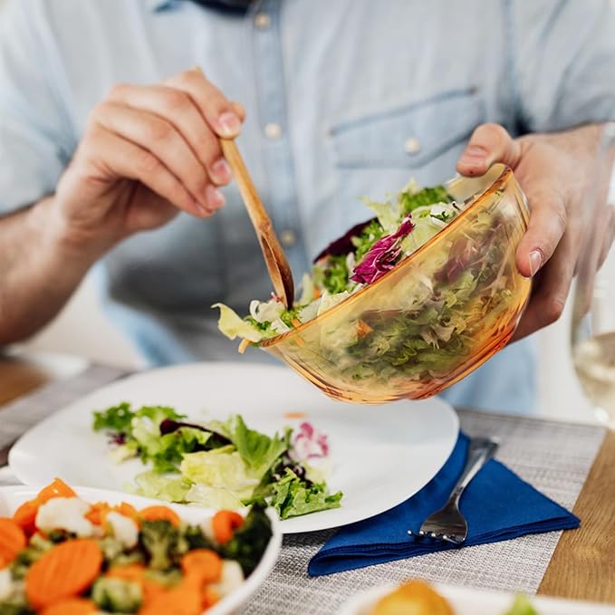 The rich amber hue creates a stunning visual accent, making these bowls perfect for both everyday dining and special occasions. Their versatile design makes them ideal for serving salads, soups, desserts, snacks, and more—a beautiful balance of style and practicality.