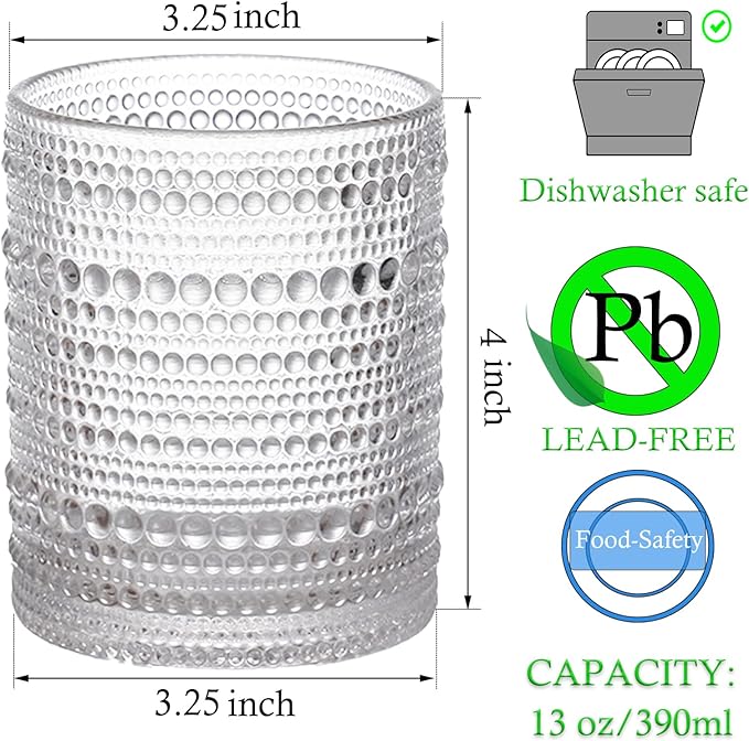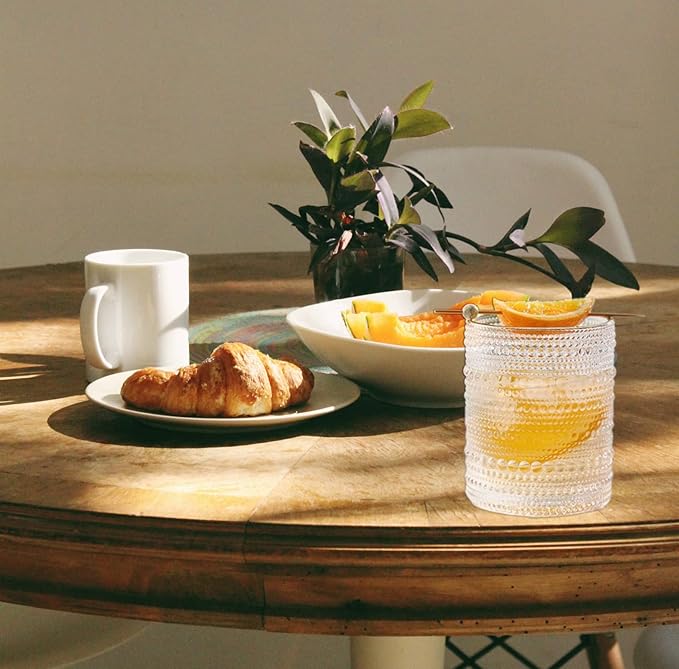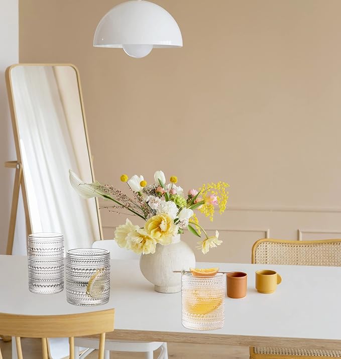 Featuring symmetrical carved patterns, each glass offers a tactile and visually appealing experience. The clear, retro-inspired design adds a touch of sophistication to any table setting, making them both practical and decorative.