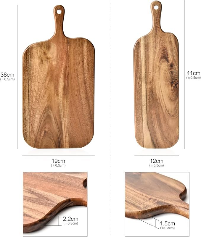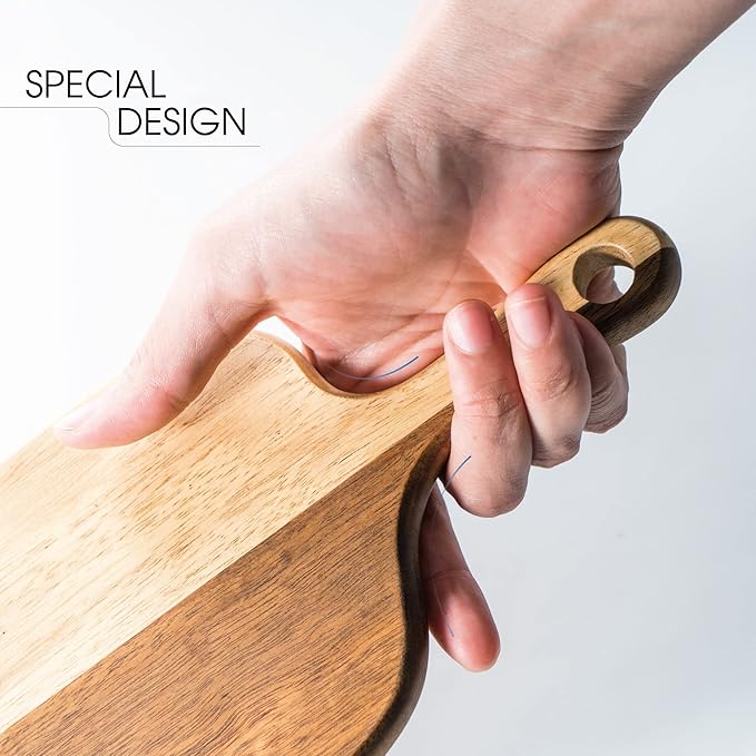 BILL.F Acacia Wood Cutting Board with Handle Small Size Long Wooden Charcuterie Board Paddle Cheese Board Serving Boards for Kitchen Meat PizzaCheese Bread Vegetables &Fruits 16 x 4.7 x 0.6