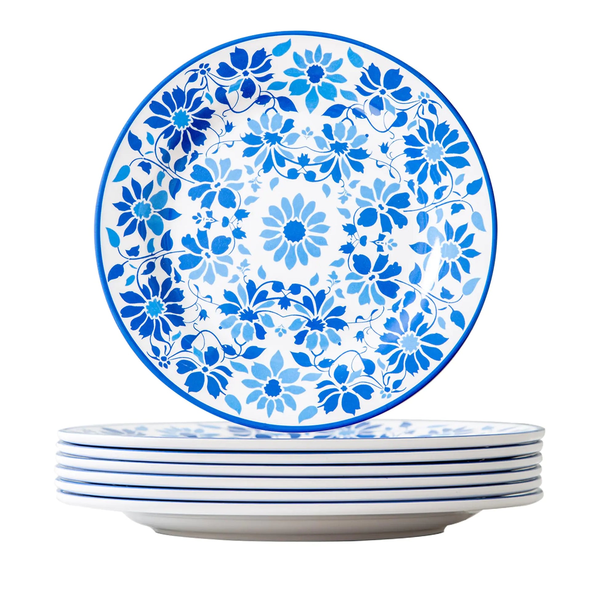 Blue Flora 6-Piece Melamine Plate Set