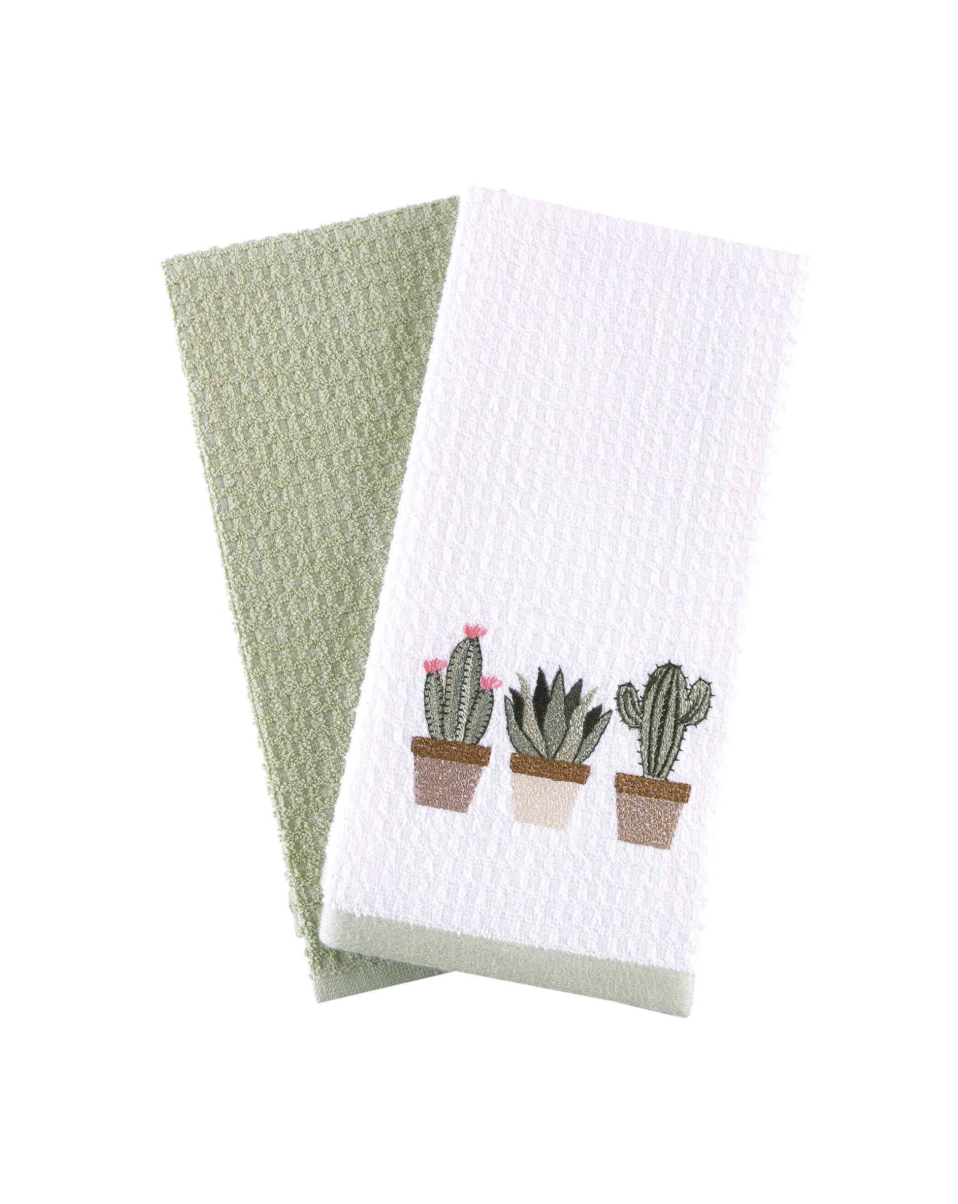 Cactus Charm Cotton Kitchen Towels - Super Absorbent and Soft, Pack of 2
