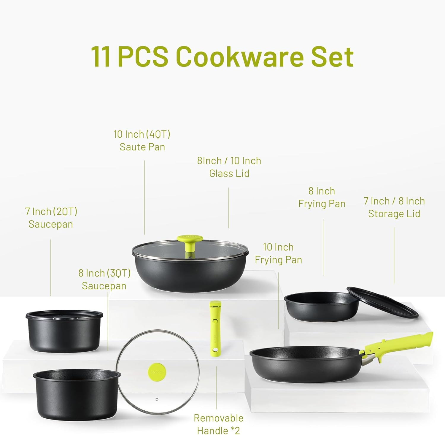CAROTE 11pc Nonstick Cookware Set with Detachable Handles