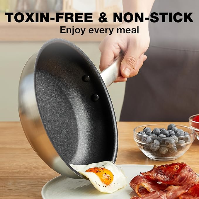 - Toxin-Free Non-Stick Coating: Made from food-grade 18/8 stainless steel, free of PFAS, PFOA, lead, and cadmium. Enjoy healthy cooking with excellent non-stick performance.