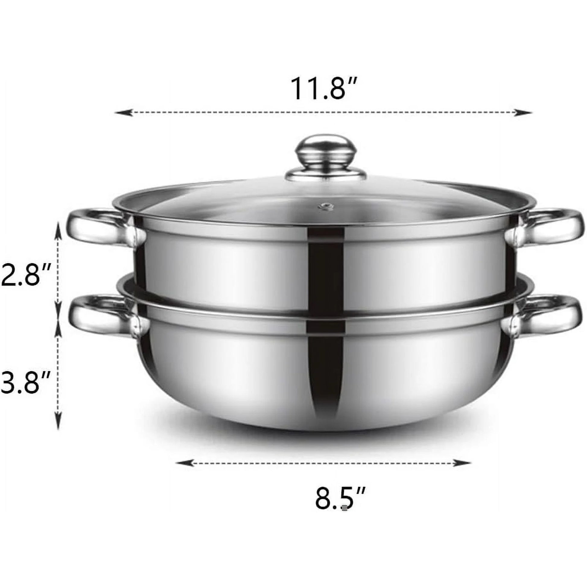 Dual-Tier 18/8 Steel Steamer Cookpot