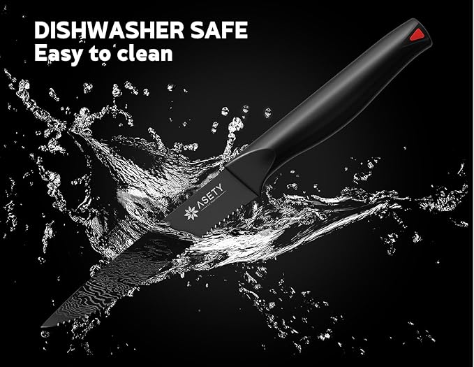 The protective black coating offers excellent resistance to wear and corrosion, keeping the knives looking new over time. Dishwasher-safe construction adds ease to cleanup.