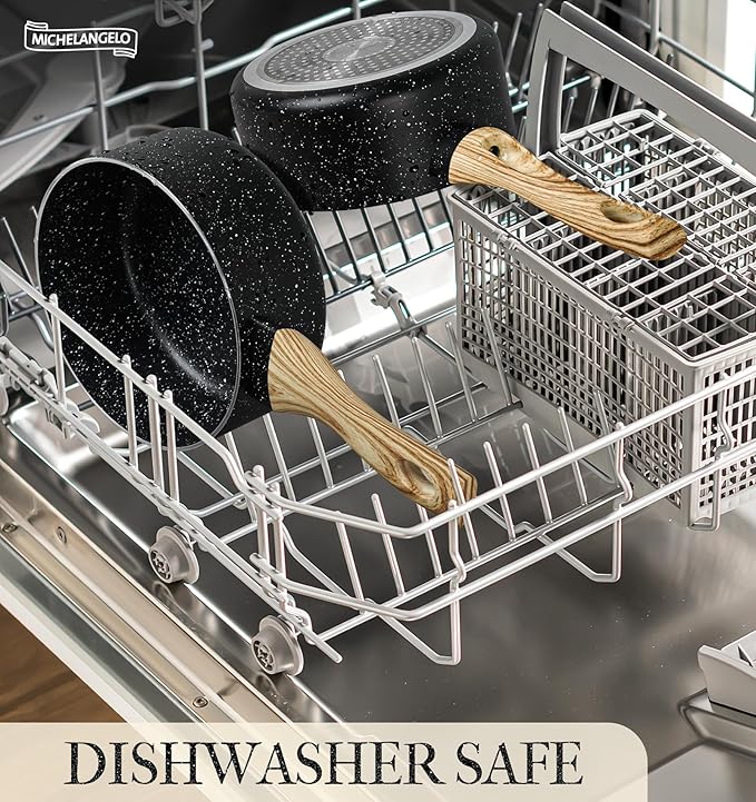 Eco-Friendly Granite Nonstick Coating: Crafted with natural stone material coating, this set is 100% APEO & PFOA-free for safe, healthy cooking.