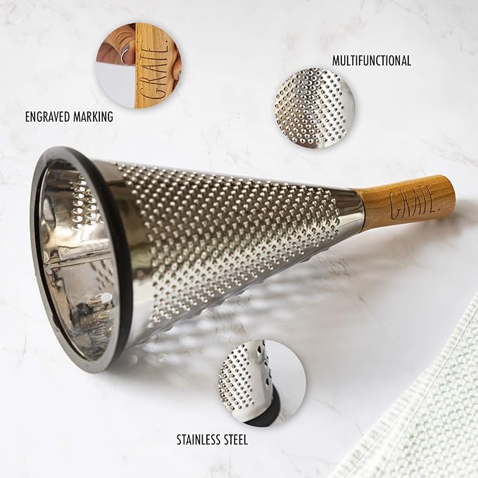 Rae Dunn Stainless Steel Cone Grater with Beechwood Handle