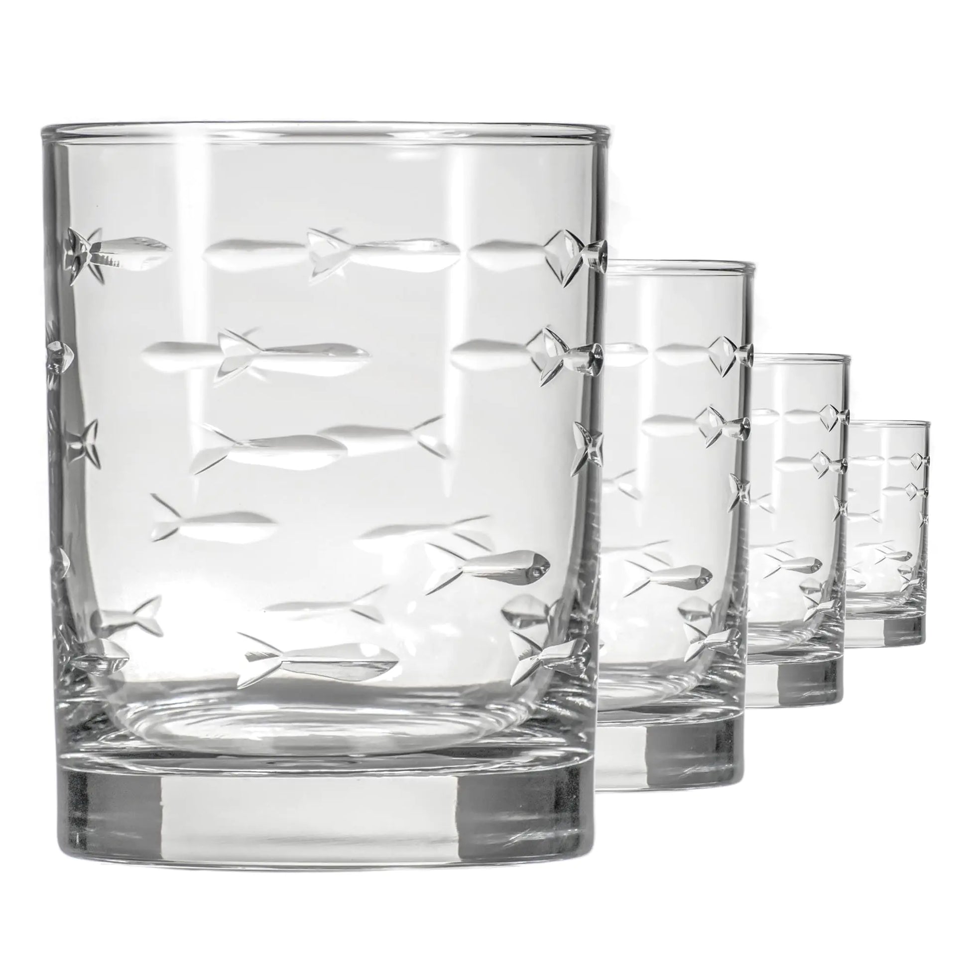 Rolf Glass 13oz Fish Engraved Whiskey Tumblers - Set of 4