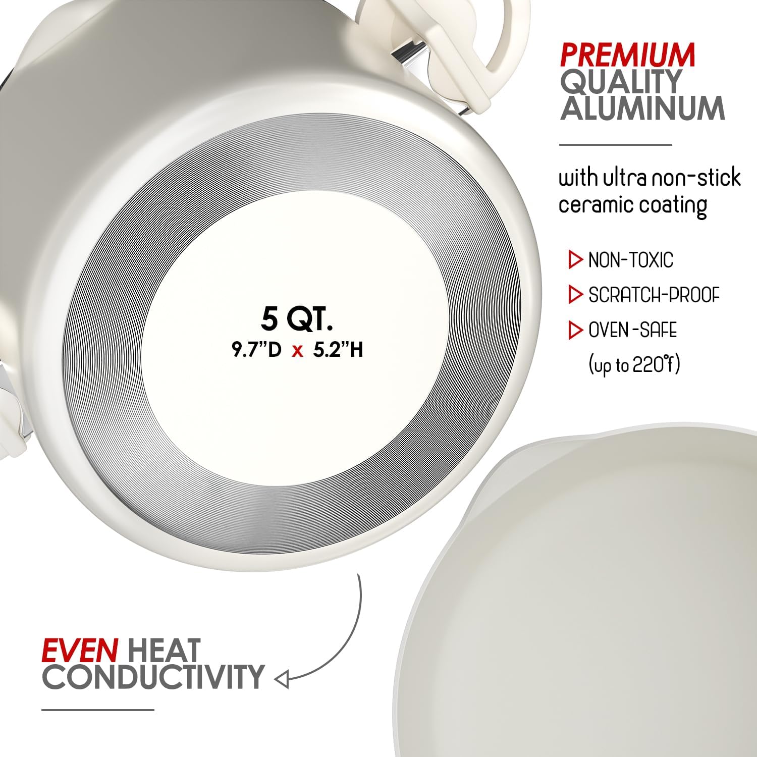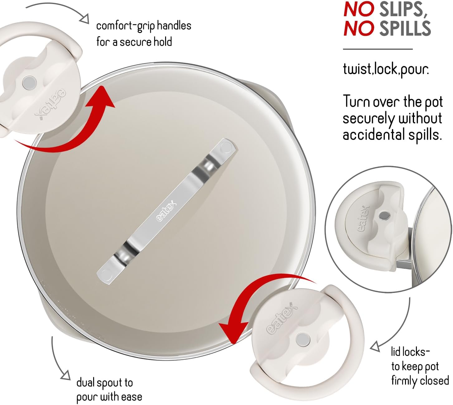 Eatex 5 Qt Twist & Lock Stock Pot with Lid – Stainless Steel Nonstick Ceramic Cookware