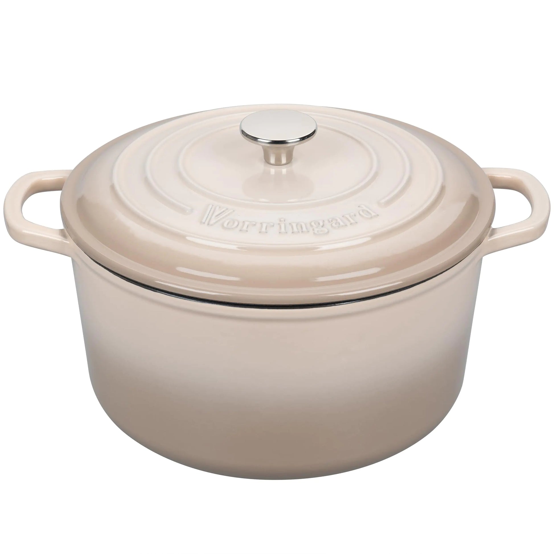 VORRINGARD Enameled Cast Iron Dutch Oven Pot with Lid for Sourdough Bread Baking Round Dutch Ovens 6 Quart Latte